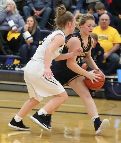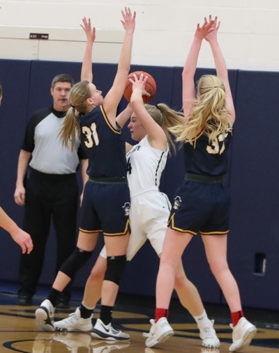 Crookston started the second half with a 6-2 run with baskets from Gretchen Theis and Hayden Winjum and two free throws from Halle Winjum for a 20-15 lead. East Grand Forks responded with three free throws to get within a two-point deficit and the teams battled back and forth for the next two or three minutes and the Pirates led 24-20 with 7:02 remaining. Crookston led 26-22 and went on a 6-1 run with four of the points scored by Kasey Cwikla and Crookston led 32-23 with 1:22 left in the game. “Kasey Cwikla had a great game tonight,” said Crookston Coach Zimmerman. “She played a great defensive game and a great all-around victory.” Crookston held on and made enough free throws in the final minute to win the game 34-28. “East Grand Forks played extremely hard and they are a good team,” said Pirate Coach Zimmerman. “I think both teams played very good defense. We were able to make enough plays and hit some free throws down the stretch.” East Grand Forks Coach Jay Frydenlund said he had to give credit to his girls and Crookston. “Give Crookston credit. To come out without Emma Borowicz to play with that kind of heart was impressive. I was happy with the way our girls played and how hard they played. They left everything out there and that is all we can ask for.”