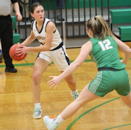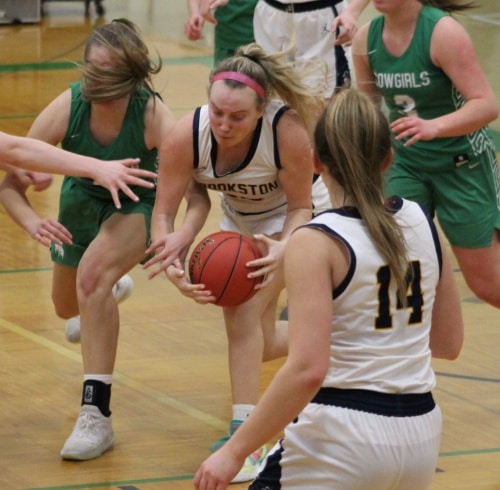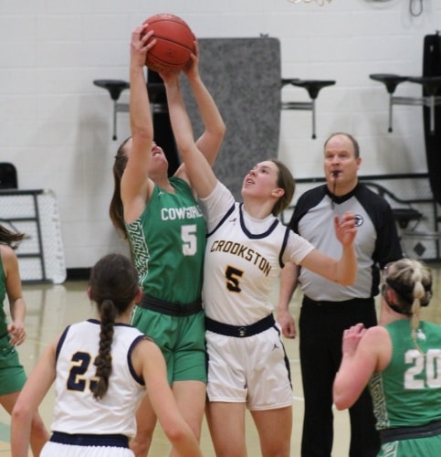 Much like last night, neither team lit things up from the outside to start things off, working it inside much of the time. Both teams did play in your face defense which caused several turnovers on both sides. After eight minutes of play, Crookston had a 7-6 lead to start the game. It didn’t get much offensively as neither team hit double digits in scoring until Breckenridge’s 6’1 Addison Twidwell scored down low and gave the Cowgirl’s an 11-9 lead with three and a half minutes left in the first half. Crookston cut the lead to 13-11 when Emma Osborn beat everyone down the court for an easy layup with under two minutes to go. In the last two minutes, the only other scoring was after some swift passing by Breckenridge and draining a three-point shot, which gave the Cowgirls a 16-11 lead at half-time. “Our shooting is off for a number of reasons,” said Crookston head coach Darin Zimmerman, “we need to have a little better passing and just be a little more fundamental in our shooting of the jump shot. We talked at half-time about getting the ball into the middle more, and that helped us in the second half.”