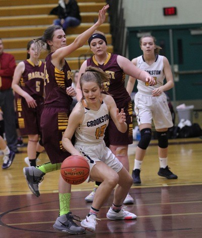 Crookston had an even better start to the second half and scored the first 17 points over a five-minute span to take a 54-4 lead with 13:05 left in the game. “We are always looking for consistent starts,” said Coach Zimmerman. “We came out and executed and actually we started the second half better than we started the game.” Kasey Cwikla led the Pirates with eight of her team’s 17 points to start the half. Crookston went deep to the bench about halfway through the second half and running time started shortly after. The second half went quick with the running time and Crookston won 66-14. “It was nice to get everybody in the game and they played hard,” said Coach Zimmerman. “I thought the girls that came in for the last nine minutes communicated better than our first group. They were loud and talking and that was great to see.”