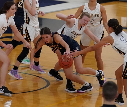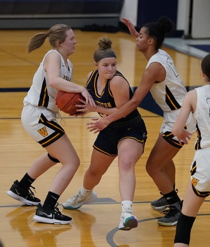 Neither team was exactly sharp on the offensive end to start the second half, but Crookston’s Borowicz scored the first basket and Ally Perreault followed with another for a 40-6 lead. The next basket was scored by Warroad four minutes into the half before Osborn converted a three-point play for her 20th point of the game and the Pirates led 43-8. Crookston led 44-9 when Warroad went on their second biggest run of the game with a 5-0 run with four points from Faith Lilly. Crookston answered with back-t0-back three-pointers from Coauette and Bailey Cameron for a 50-14 lead with 10 minutes to go. Warroad responded with their biggest run of the game when Faith Lilly rattled off six straight points to bring the Warriors within a 50-20 score. Crookston led 55-22 when sophomore guard Emma Gunderson scored the first points of her varsity career with a rare four-point play. In the final minutes, Hannah Loraas played well in the post and added four points as Crookston pulled away for a 63-26 victory.