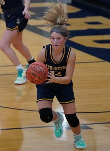The Crookston Pirate Girls Basketball team outscored the Warroad Warriors 36-6 in the first half and cruised the rest of the way on their way to a 63-26 victory in a Section 8AA matchup in Crookston.
