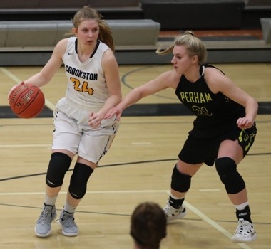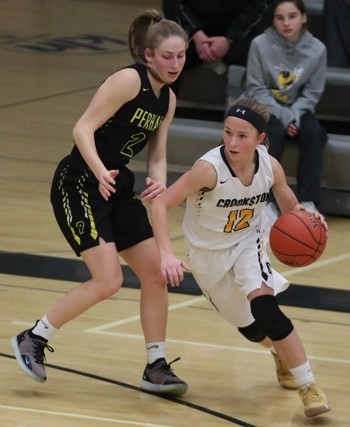 Crookston had a great start with back-to-back three-pointers from Dani Boyle and Kylie Solheim and a little over seven minutes into the game they led 12-6. “We were pretty good and nice to come out and hit a couple of three-pointers,” said Pirate Coach Darin Zimmerman. “It was a good start.” Crookston’s offense struggled the rest of the half as Perham outscored the Pirates 18-4 in the final 10:16 of the half behind 12 points from Mesa Schultz and the Yellowjackets took a 24-16 lead into halftime. “She (Schultz) was really good and we didn’t do a job of containing her,” said Coach Zimmerman. “I wasn’t very happy (at halftime) and I don’t think the girls were either. I think we are a really good team, but we have to take the next step forward.”
