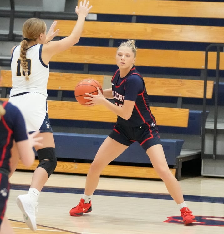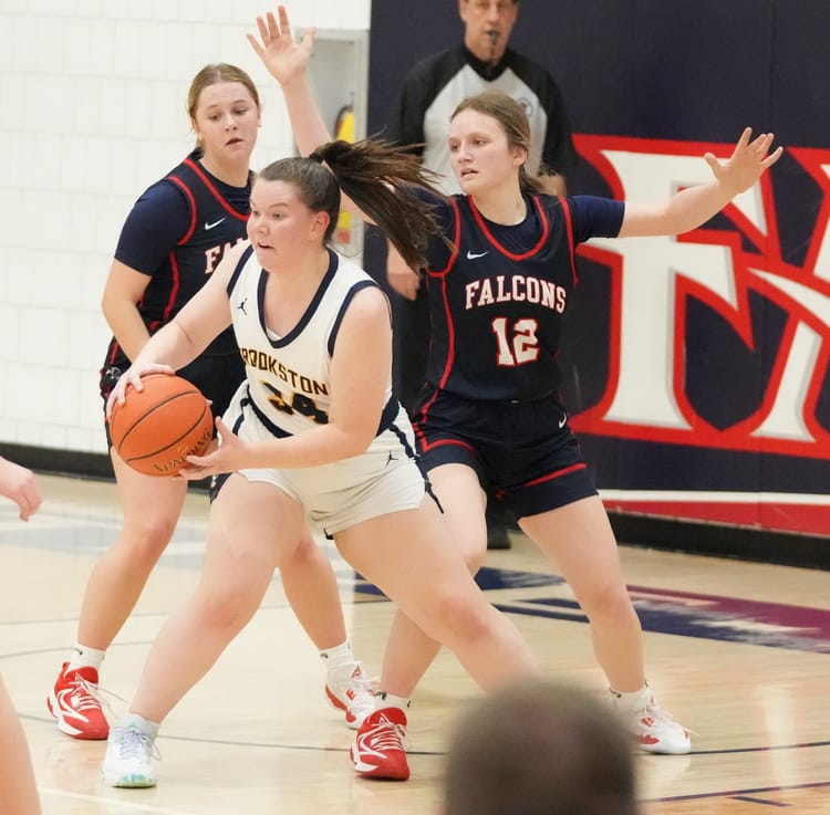 Fertile-Beltrami responded with five points for a 13-8 lead. A few minutes later, Fertile-Beltrami had a 17-13 lead after a Bailey Iverson basket, and Crookston’s Boll sisters answered with a Grace Boll three-pointer, a basket from Chloe Boll, and another three-pointer from Grace Boll for a 21-17 lead with 4:24 to go in the half. Fertile-Beltrami answered with baskets from Katrina Hitchen and Stueness to tie the game at 21. Chloe Boll made a free throw before Fertile-Beltrami answered with four points for a 25-22 lead. The Falcons ended the half with a 30-26 lead after an Iverson three-point play.