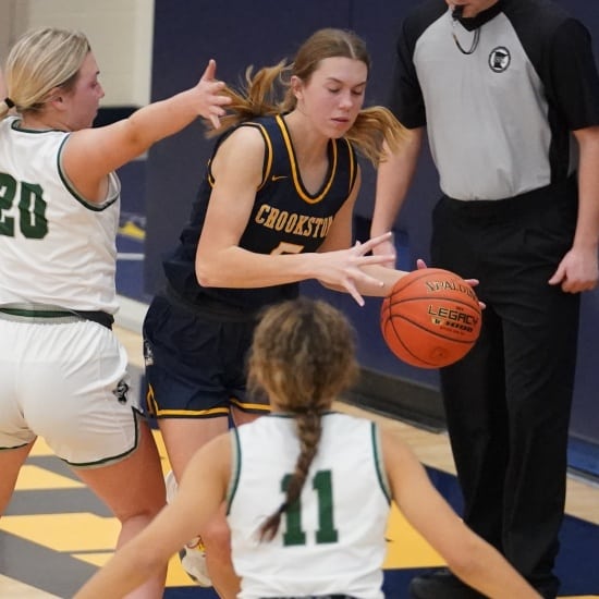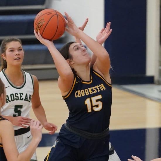 Roseau started the scoring with an Anya Severson basket for a 2-0 lead on the first possession. Â Crookston responded with an 8-0 run with a Halle Winjum three-pointer, a Winjum block that led to a steal and a layup. Â Libby Salentine capped the run with a three-pointer from the left wing for an 8-2 lead three minutes into the game. Â Crookston continued to build on the lead and took an 18-8 lead after a basket by Winjum. Â Things changed quickly, and Roseau answered with a 10-1 run over the next four minutes. Â Severson had four points, Kayla Bachleitner and Janna Preteau, and a free throw each from Brooklyn Hulst and Sophia Olson to get within a 19-18 deficit with six minutes remaining.