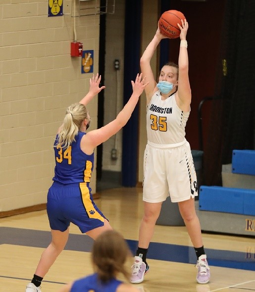 Crookston stepped up the defensive pressure to start the second half as they turned several Thief River Falls turnovers into points and went on a 9-0 run. Hayden Winjum had four points, Halle Winjum made a three-pointer and Ally Perreault had a basket in the paint to give the Pirates a 45-23 lead. “Emma had two nice passes up the floor for our first two baskets,” said Coach Zimmerman. “We also picked up the defense a couple of steps to start the second half and that was nice to see.”