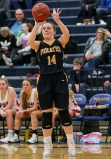 Crookston utilized smothering defense in the first half as the Pirates managed to force 23 Win-E-Mac turnovers in the first half to take a commanding lead into halftime. The Patriots jumped out to a 2-0 lead before Emma Borowicz knocked down a three-pointer giving Crookston the lead. Borowicz added a pair of free-throws giving the Pirates a 5-2 lead with 16:40 left in the first half and Crookston never looked back. Rachel Hefta delivered a pass to a cutting Borowicz who finished at the rim to continue the Pirates’ 9-0 run with Crookston taking a 9-2 lead. Emma Borowicz continued her stellar first-half with a three-pointer to spark another 9-0 run pushing the Pirates’ lead to 18-4. A Gretchen Theis three-pointer grew the Crookston lead to 21-6 before two more Borowicz free throws expanded the Pirates’ lead to 23-6 with 10:53 left in the first half. Gretchen Theis finished a contested lay-up at the rim giving Crookston a 27-10 lead with 6:43 left in the opening half. Leading 29-12, Hayden Winjum scored four-straight points giving Crookston a 33-12 lead. “I think our spacing was really good and there was a lot of unselfishness early on,” said Crookston head coach Darrin Zimmerman. “Obviously, when you make shots that helps too and we made some shots right away and I think confidence was high after that.” The Pirates finished a perfect half at the free-throw line after Rachel Hefta knocked down two shots from the charity stripe to close out a 39-15 first-half in which Crookston shot 14-14 from the free-throw line. “It was a really complete half, I thought,” added Zimmerman. “For eighteen minutes I thought our intensity was high especially on the defensive end. Our defense led to some offensive opportunities for us and that’s one of the things we emphasized this week. We played a really good first half on Tuesday night, but it was only fourteen minutes and we needed to put a full half together and get those extra four minutes because it makes a really big difference and we were able to do that tonight.”