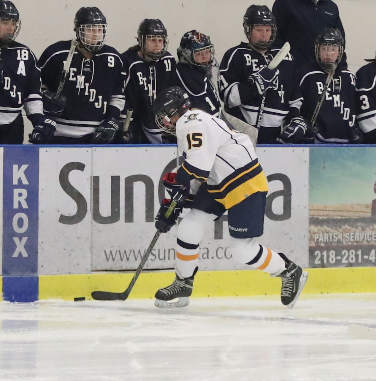 Crookston generated its most shots in the third period with six, but Bemidji tallied seventeen shots on goal in the final period with Olivia Johnson beating Koshney for the game’s final goal with 7:36 remaining to close out the 5-1 win got the Lumberjacks. “In the first period we competed really well, I thought,” summarized Moe. “In the second period, things got a little bit away from us and that has a lot to do with the fact that we’re young. We’re figuring it out and I think we took another step forward tonight. We just haven’t been able to put a complete game’s worth of focus together yet. We lose focus for a little bit and it leads to opposing teams putting the puck into the back of the net as a result of a missed defensive assignment. I think we’re getting better every time. We’re learning how to compete. The physicality may not be there yet, we’re not strong enough yet, but we’re working hard and we’re getting better. Tonight, we were able to put some different kids in different places and they responded well. We’re facing some adversity right now but the kids are adapting and doing what’s needed to get better.”