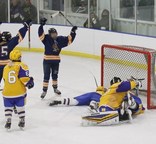 The Crookston Pirate Girl’s Hockey team jumped out to a 3-0 lead and Thief River Falls came back with two goals, the second with just under four and a half minutes to go in the game. Crookston was able to add an open net goal with 17 seconds left to secure an important 4-2 win over Thief River Falls in a Section 8A game that makes it a sweep over the Prowlers during the regular season, this one at the Cardin-Hunt Arena in Red Lake Falls, who coop’s with Thief River Falls.