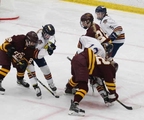Crookston, 11-6-1, will now play their fourth game of the week Friday night at East Grand Forks. It’s a Section 8A game with a lot of meaning as East Grand Forks beat Crookston 4-3 on December 23, also in East Grand Forks with the Pirates outshooting the Green Wave 30 to 15. “This is our fourth game this week, and it’s the biggest one of the week because of the Section importance,” said Meyer, “we have to pick ourselves back up and get ready for it both physically and mentally. I know the girls have been talking about the East Grand Forks game, and we will be ready tomorrow night.”