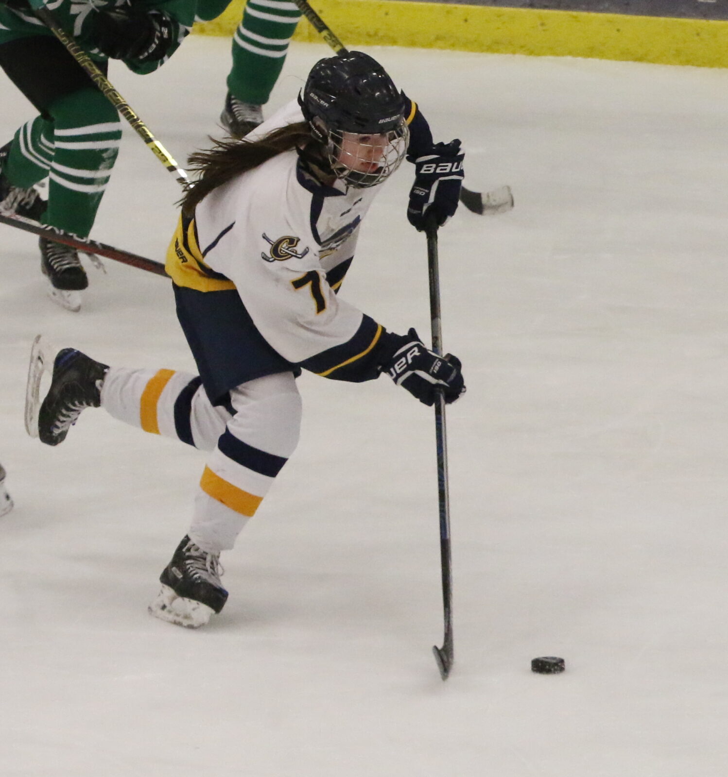 Both teams traded a few scoring chances in the opening, but both goaltenders kept their nets clean. Crookston’s goaltender Grace Koshney stopped ten first period shots while East Grand Forks netminder Ellie McDonald denied five shots. “We held them scoreless there in the first,” said Crookston head coach Tim Moe. “For the most part, we did a nice job. We liked what we were doing in the offensive zone, creating chances ourselves. However, we gave up too many scrambles in front of our net, but Grace Koshney played outstanding again tonight and made some saves she had no business making.”