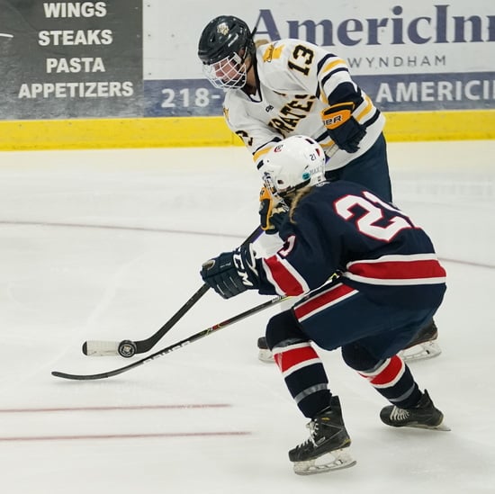 Before the start of the third period, Meyer said, “Kaylie Clauson put it perfectly, we wanted to be the ones to answer first and play defense like we have been the rest of the period.” Crookston had a power play of 1:59 to start the third period and another chance to take the lead, but Wostrel made some nice saves as Crookston warmed up with chances with the extra person. The Bluebirds would take their second lead of the game when June Semling sped into the Crookston end and just blew by two Pirates and was alone on Freije and able to beat her to give Champlin Park/Coon Rapids the 2-1 lead with the biggest goal of the game with nine minutes to go. Just after the goal, Crookston had another power play chance and were unable to score again going one for five on the man advantage for the game. With the Pirates thinking about pulling the goalie they took another penalty with just under three minutes to go. Although Crookston killed off the penalty it took away from the offense and both teams were full strength with under a minute to go and the Bluebirds were able to go with three seconds left when Sydney Burnevik jammed a rebound in to make it a 3-1 final with Champlin Park/Coon Rapids going home with a win. “Hopefully we can shake this off,” said Meyer, “our team feels this one a lot because they really wanted it. We just have to regroup for a big game on Tuesday.”