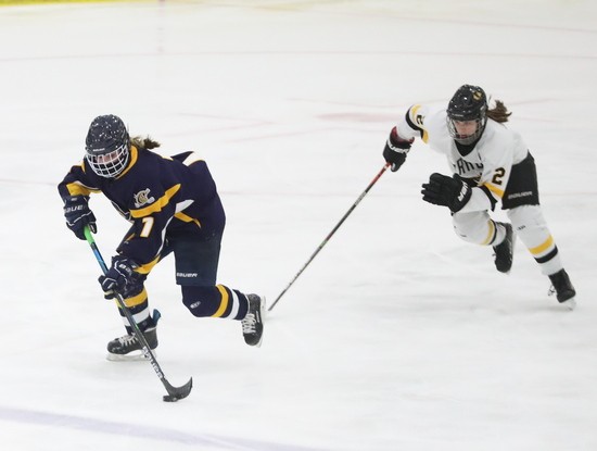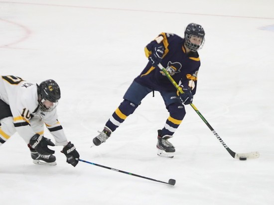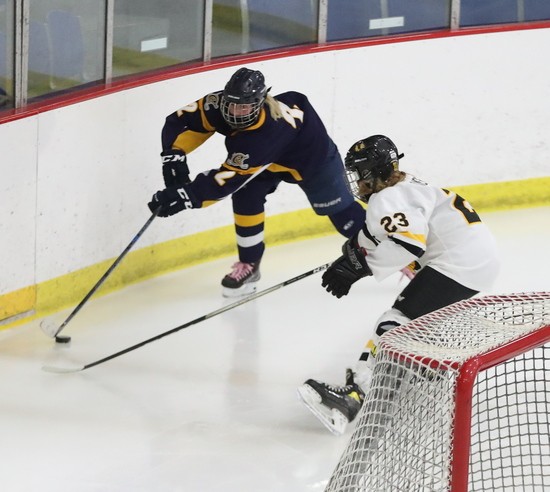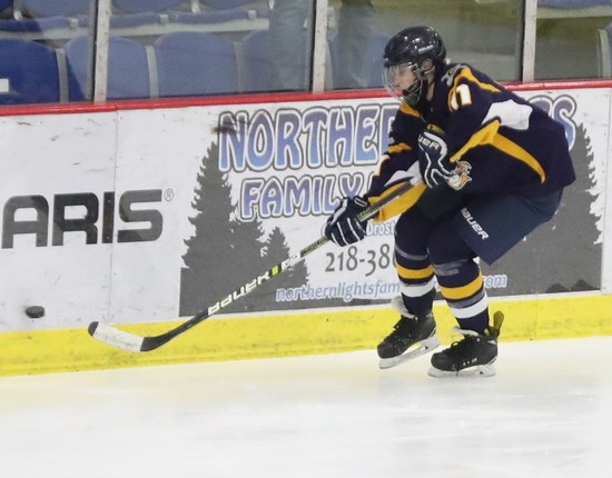 Warroad scored three more goals in the third period. The first was defenseman Katierie Sandy on a nice wrist shot from the top of the circle, Abbey Hardwick on a two on one, and Kate Johnson finished it off. “Warroad is ranked number one in the state and has a very good hockey team,” said Moe, “we want to be at their level in the future, and to get there, we have a lot of things to do. We will watch some tape, hopefully sometime Monday, before heading over to Mayville to play Fargo North-South. It will show a lot of things that you can’t see at ice level. Looking at situations and what you could have done differently, people behind you, things like that. We have to learn from this, if we think we’re good playing in practice, this shows us we have a ways to go, but the kids never gave up. They were skating hard right until the end.”