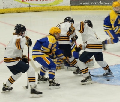 Crookston would hold that lead to pick up their 12th win of the season. Crookston was 3 for 6 on the power play and killed off two penalties. Crookston outshot Thief River Falls 48-22 in the game. The Pirates will go to East Grand Forks for another Section 8A game on Thursday. The Pirates have beaten East Grand Forks once already, and even though the two teams will play a third time at Mayville, Crookston would almost clinch the #2 seed for the Section 8A playoffs behind Warroad. “That is our goal,” said coach Meyer, “we are coming down to the nitty-gritty of the season, and those are the games we have to win. We got this one done, which will be the main focus for Thursday at East Grand Forks.