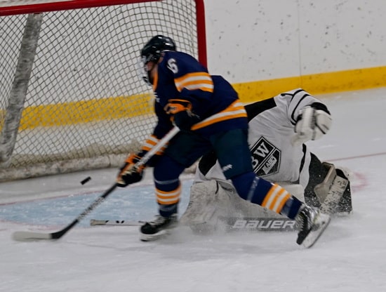 With just under four minutes left in the period, Crookston junior defenseman Swanson circled behind the Blades net, swung around in the slot area, and beat the Blades goalie Kolle Schuler, and Crookston led 2-1.