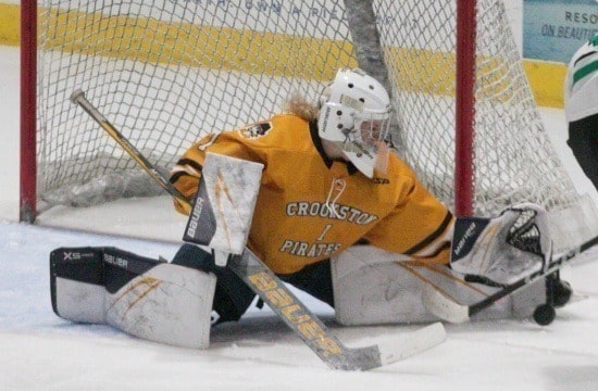 The second period started much like the first until one of the state’s leading scorers, junior Natalie Bergman, scored her 16th of the season when she was in the Crookston end, undressed one of the Pirates and point-blank shot on Pirate goalie Kambelle Freije, who made a tremendous save. The rebound rolled back to Bergman, who one-timed it past Freije to make it 1-0 with nine and a half minutes left in the period. “It was a little mistake on our part that allowed them the goal,” said Meyer, “we do such a good job on our end against a good team to having a breakdown on our end, and Kambelle gets peppered with shots, a little bit. That was the most frustrating thing.” The goal for Rock Ridge seemed to spur Crookston the rest of the period as Crookston picked up the pace with a little more offensive zone time. “We need to find a way to play a more we game than my game,” said Meyer, “we just need to find ways to be more consistent.”