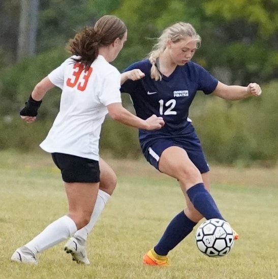 The Crookston Pirate Girls Soccer team trailed by a goal three times in the game only to tie it up each time and played to a 3-3 overtime tie with the Pelican Rapids Vikings in a Section 8A matchup played in Crookston. “It was an exciting game,” said Assistant Coach Anna Brekken, filling in for Head Coach Sarah Reese who had a work-related conflict. “We don’t always want it to be that exciting, but the girls played with heart and they made some great plays.”