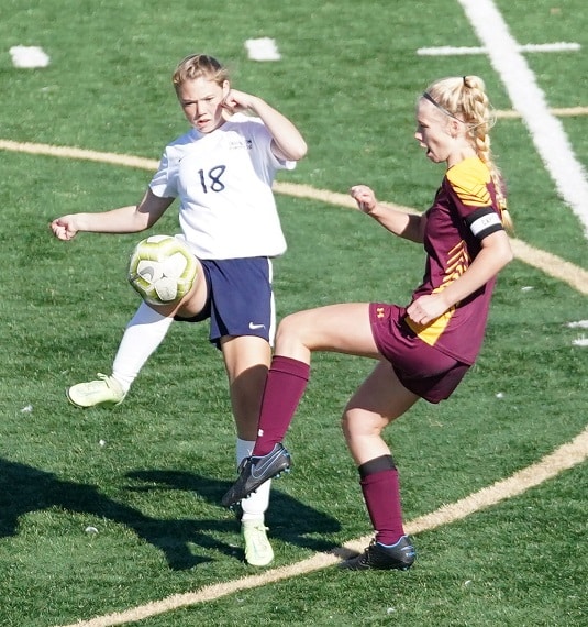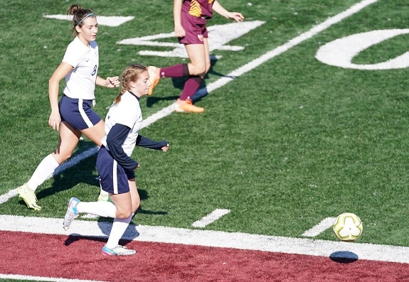The first half was played with the defenses dominating play. Both sides would complete a pass or two up the field and then be immediately stonewalled by the opposing defense. Neither offense generated a shot, until they were over ten minutes into the game. Shots came at a premium, especially for the Pirates. Crookston made adjustments to their formation and defensive scheme, dropping back and forcing Fergus Falls to play at a slower pace than they prefer. “We played a low pressure defense where you defend as a team and play farther back on the field,” explained Coach Reese. “They have very dynamic forwards so in order to create less space for them you have to back everyone up including your forwards.” In turn, the offense struggled to stay consistent with the lack of focus on that part of the game. “The hard part with the low pressure defense is that it’s hard to get the really quick, snappy counter-attacks,” added Coach Reese. “We did get out from time to time but we struggled in our transitions to get the shot off.” Fergus Falls started to find cracks in the Pirate defense a little over halfway into the game when a through-ball found the feet of Piper Andrews in the box. However, the Pirates goalie, Reese Swanson, reacted quickly and cut off the angle for Andrews to shoot and she missed wide right. Yet, Andrews would bounce back quickly. This time a pass slipped right past a couple of Pirate defenders and Andrews made sure to take a quicker shot this time as she found the back of the net for an Otters 1-0 advantage with 10 minutes left in the half. “She is a very dynamic player. She had a hat-trick against us in the regular season so we were very aware of where she was,” explained Coach Reese. “She just had the ball at the right time and at the right place.” The Pirates were able to put sporadic pressure on the Fergus Falls defense, getting off two shots in the half, one of which was saved by Rylynn Krein. Although the Pirates trailed 1-0 at the half, they were pleased with where they were at.