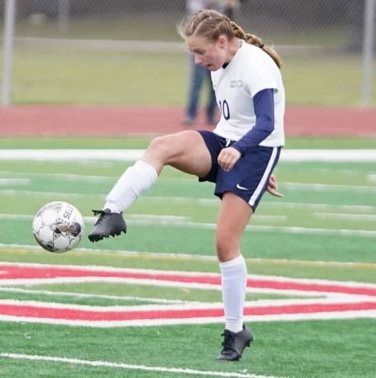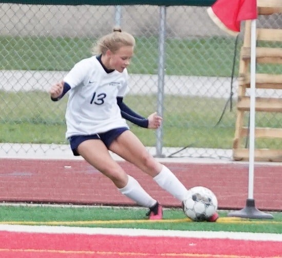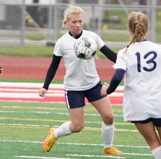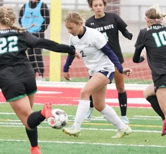 East Grand Forks continued to dominate possession, but Crookston started to make some defensive plays. Swanson had a save in the sixth minute, and Keona Arnold made an excellent clear. In the 10th minute, East Grand Forks’ Maggey Plante had a beautiful shot from about 15 yards that went just over the hands of Swanson for the Green Wave’s second goal of the game, giving them a 2-0 lead.
