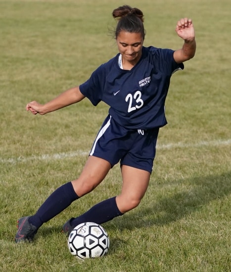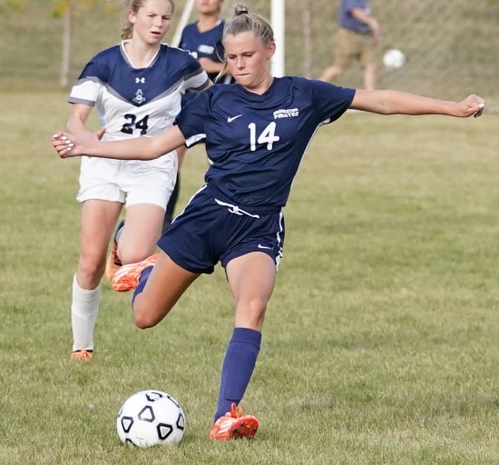 Crookston had a good start to the second half as they had a couple of decent scoring opportunities, but the Hibbing speed was able to stop a quality scoring chance. A little over halfway into the half and Hibbing beat the Pirate defense and Emma Burkes, using her speed, kicked the ball into the net for a 1-0 lead. Hibbing continued to put the pressure on Crookston and rolled a shot on goal and the Pirate goalie couldn’t scoop it up cleanly and it popped loose and Emma Burkes scored the second goal of the game for a 2-0 lead with 1:35 left in the game.