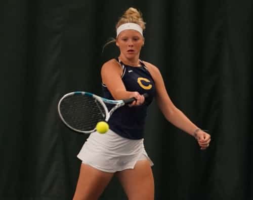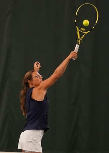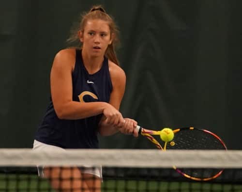 The third doubles team of Hannah Lindemoen and Morgan Nelson won the closest match of the day. They won their first set 7-5 and then won the second set 7-6 and 7-5 in the tie-breaker to complete the sweep of the doubles matches.