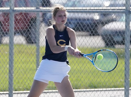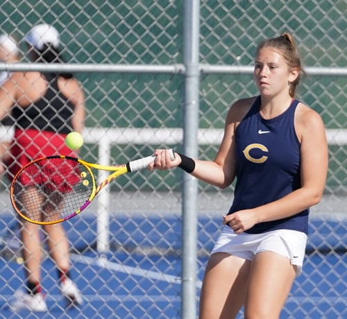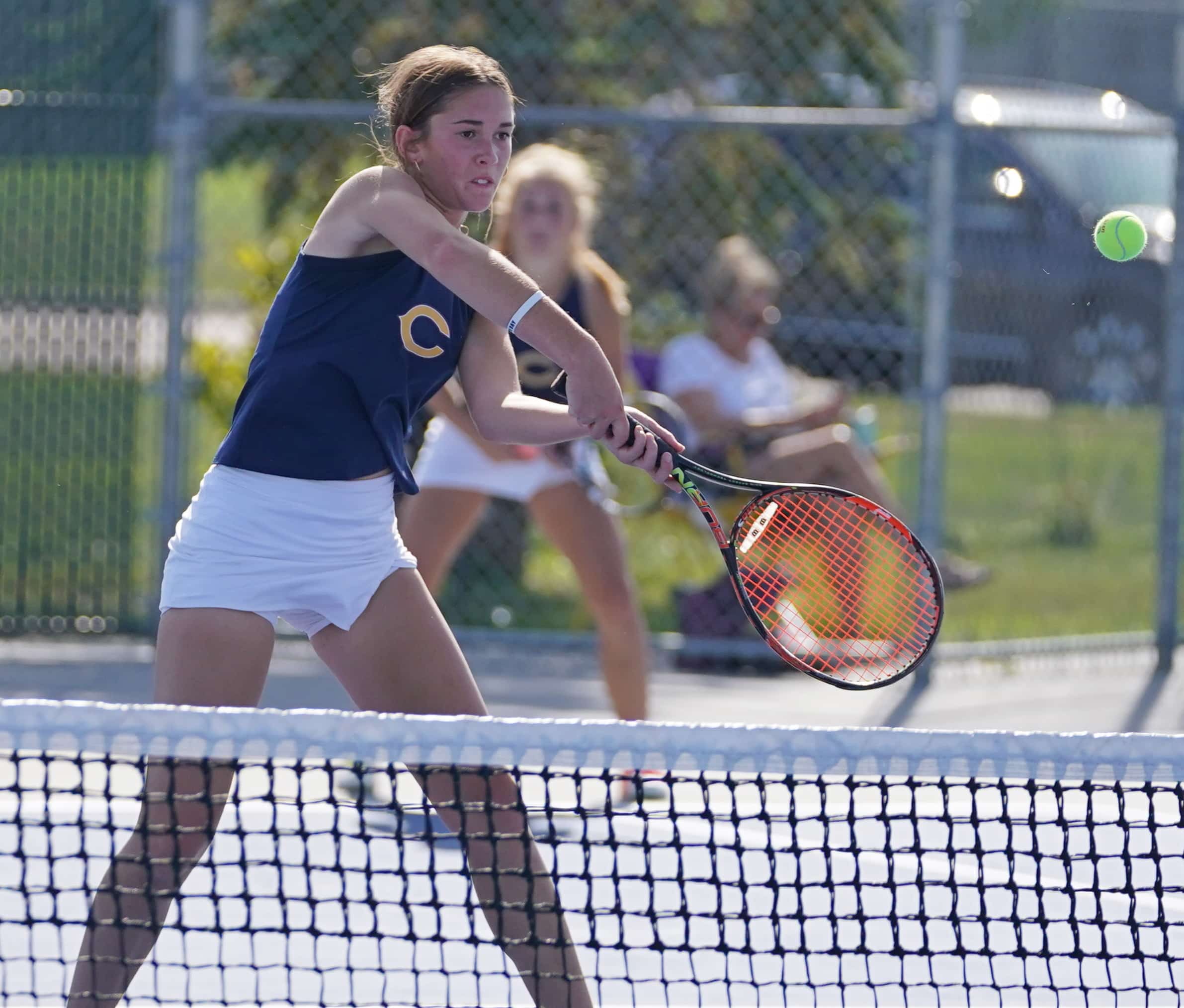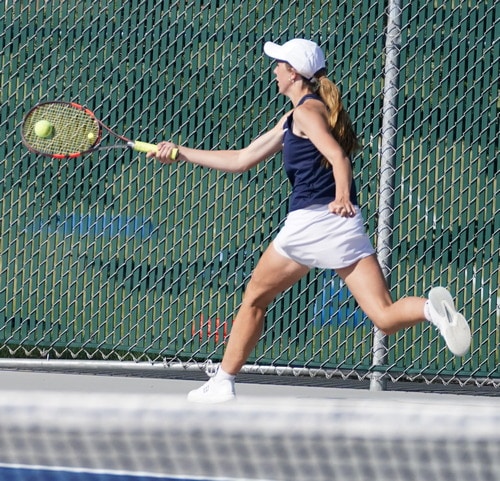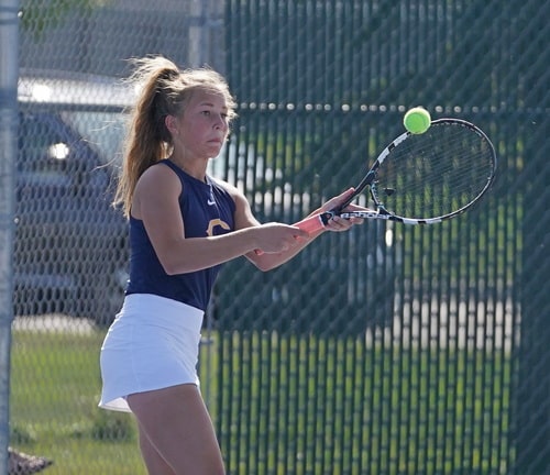Isabelle Smith finished second place while winning two of her matches at fourth singles at the Highland Courts. “Isabelle played well, and it was nice to see her get a couple of wins today,” said Coach Tiedemann. “She is a solid player, and in her loss, she was right there.”