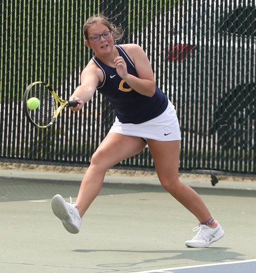 Crookston took a quick lead when Emma Osborn won her fourth singles match in about 33 minutes with a 6-0, 6-0 victory to give the Pirates a 1-0 lead. Halle Winjum won her third singles match 6-1, 6-0 to give the Pirates a 2-0 lead. Crookston completed the singles sweep to solidify the win with victories at first singles with Catherine Tiedemann winning 6-0, 6-0, and Hayden Winjum winning the second singles match 6-1, 6-0. “Singles came out and played as good as they could of today,” said Pirate Coach Cody Brekken. “All four of those girls came out and competed. It’s great to see the competitiveness between them and they all performed well.”