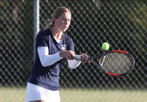 In the third set, Winjum had a good start and took a 1-0 lead. Fagerstrom won the next game, but Winjum responded with a win to take a 2-1 lead. The two split the next two matches and Hayden led 3-2 as the marathon match continued to entertain the large crowd braving the cool temperatures. Winjum continued to play steady and consistent tennis and took a 5-2 lead.  Fagerstrom answered one a big way winning two in a row to cut Winjum’s lead to 5-4.  After some rain sprinkles, and just shy of three hours later, Winjum won the set 6-4 to give the Pirates a 4-3 victory. “It feels pretty great…I am exhausted though,” said Winjum after the match. “I was trying to keep a level head and kept hitting the ball back and force her to make mistakes. The rain messed up my vision even more and it was getting tough towards the end. It feels awesome and I am really proud of the team because it was a team effort.”
