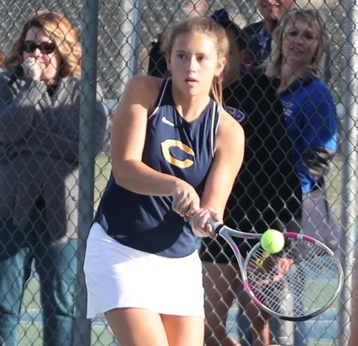 The second doubles match was a marathon and lasted over two hours. Emma Osborn and Emma Gunderson started slow and lost the first set 6-2. The Emma’s bounced back and played a great rest of the match and won the second set 7-5, and the cruised to a 6-1 win in the third set and the match. With the second doubles victory, Crookston tied the team score 3-3. “The girls started a little slow,” said Coach Brekken. “The second and third set they picked it up and they delivered.”