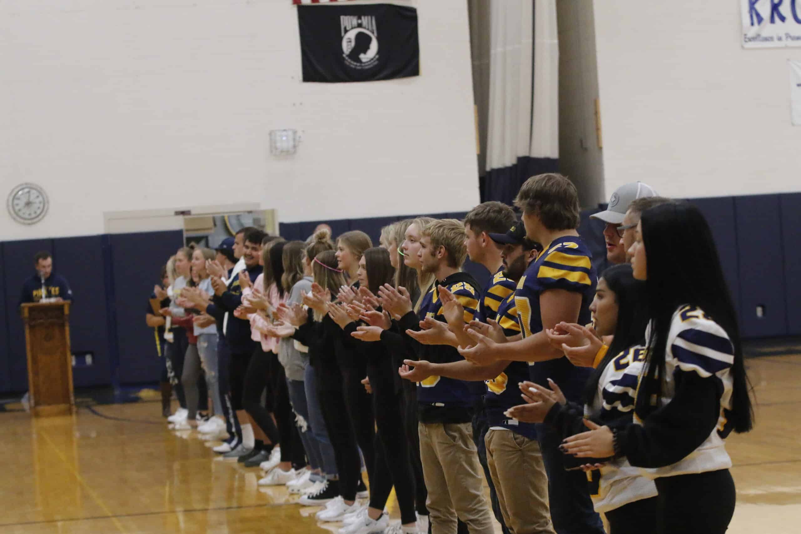 The Crookston Volleyball, Girls Tennis, and Football teams participated in a lip sync battle, and after that Activities Director, Greg Garmen introduced all fall Senior athletes.