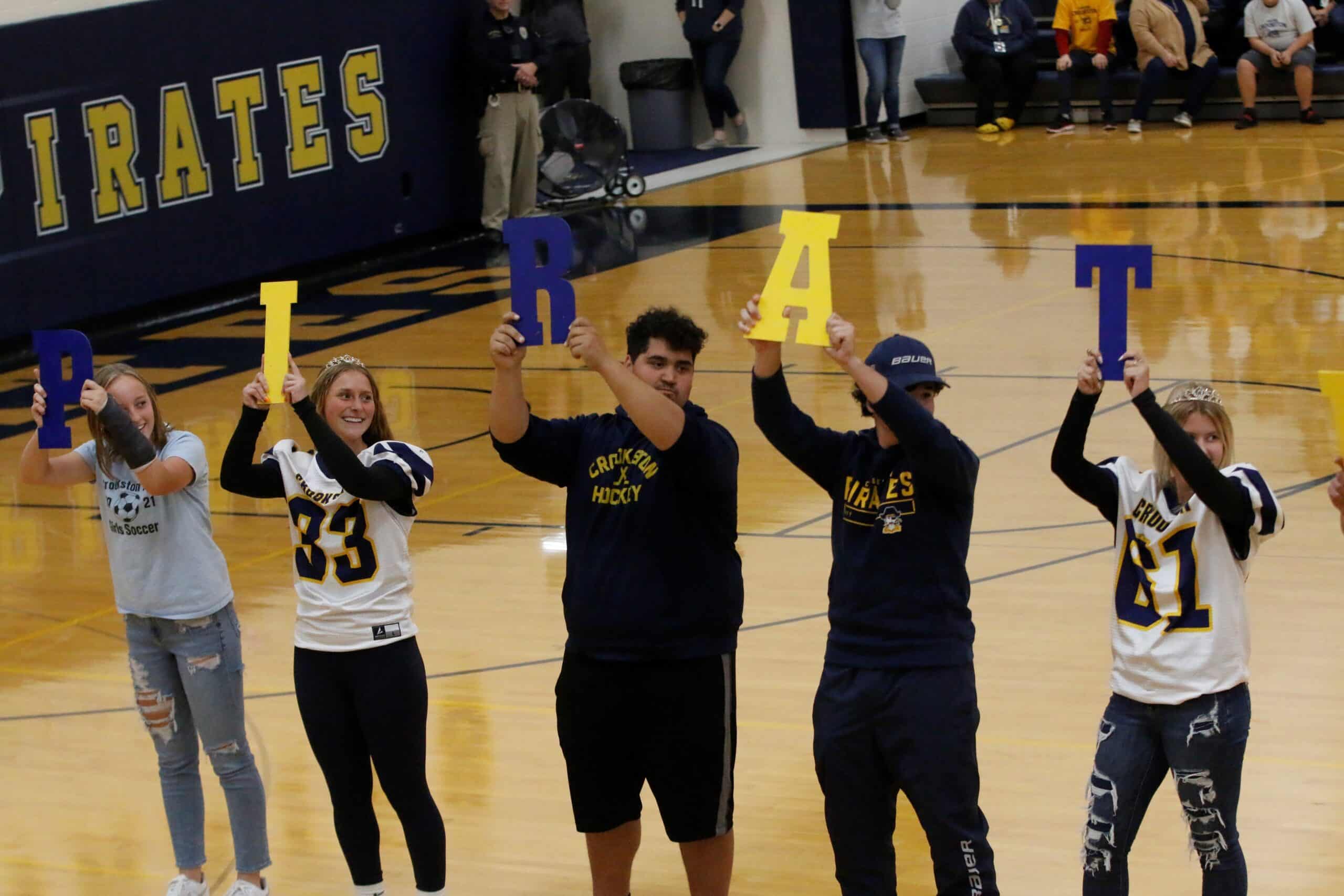 Earlier this afternoon, Crookston High School celebrated their annual Homecoming Pepfest inside the High School gymnasium. After a brief introduction from Health Teacher Josh Hardy, the Crookston Cheer team was introduced to lead the Crookston Rouser. Â