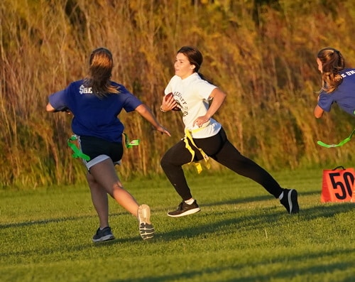 In the championship, because of darkness, each team had four downs to go as far as they could, and the team that moved the ball the farthest would be crowned champion. The sophomores moved the ball from the 50-yard line down to the 22 in their four downs. The Seniors were able to beat that and were crowned champions.