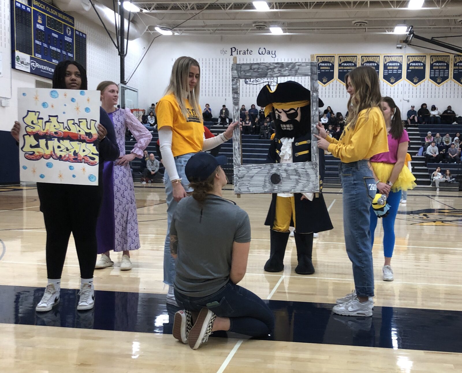 The Crookston High School closed its Snow Fest Road Trip by returning home for a Pep Fest in the High School gymnasium. After being welcomed by Health Teacher Josh Hardy and having the Crookston Cheer team lead the school in the Crookston Rouser, the school introduced the Snow Fest Royalty. The Snow Fest royalty this year included:
