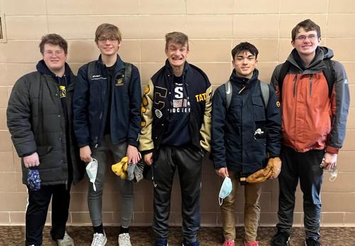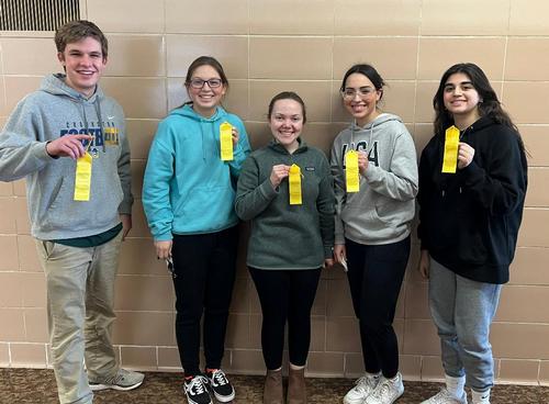 The Crookston High School Knowledge Bowl teams competed in Thief River Falls and both teams finished in the top 10 out of 26 teams. Crookston Blue (Tatum Lubinski, Halle Bruggeman, Ainsley Boucher, Ava Lopez, and Zara Baig) finished fourth place, and Crookston Gold (Xander Kuchan, Nathan Kelly, Thor Harbott, George French, and Nathan Johanneck) finished ninth place.