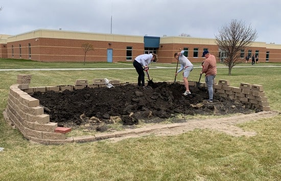 The students also thought it would be nice to have some landscaping at the front entrance of the school so they are also working on that project. “We are redoing the front of the school and adding some flower beds because there wasn’t a whole lot there, so we wanted to give it some color,” said Mrs. Rupprecht.  They will put flowers and some shrubs in the area to add a little extra to the front entrance.