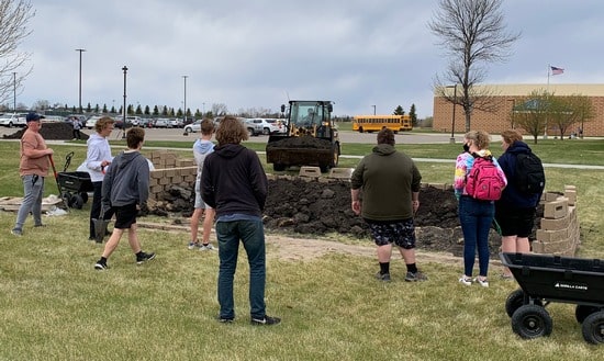 The first project the students are working on is a flower bed on the south end of the Crookston High School property that is visible to people driving by on Fisher Avenue. “That is the largest by far and it will have a huge CHS landscape design that will face the road.  It is a lot of bricks and a lot of muscle going into that,” said Mrs. Rupprecht. “We are building this ginormous retaining wall and sloping it down and eventually we will plant some flowers in there.”