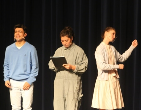 The play deals with the concept of time travel, explained Proulx. “This play revolves around time travel with three time travelers are looking for a simpler time,” said Proulx. “They go back in time. We have a seem in like medieval time, one with the founding fathers, one in like 1918, another futuristic (scene), and one traveling all throughout time with a similar storyline.”
