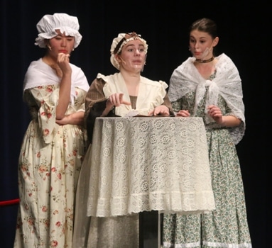 French plays several characters in the play. “I’m playing a variety of characters ranging from medieval European Winifred, who is a little ignorant in her knowledge, all the way to Martha Washington, who was a pioneer of the role model for women in that time,” said French. “Going through all of those roles is a really fun experience to be able to portray different characters and experience different forms of comedy through them.”