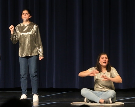 Proulx also said this play is different and talked about the variety of characters she’ll embody. “Definitely, this one has been very different than the plays I’ve done before,” said Proulx. “It kind of reminds me of a one-acts that I see because there are a bunch of different scenes. It’s not just one story; it’s like a bunch of mini-stories. I play a bunch of different people. First, I come out as Adelaide, and she is the daughter of a merchant in medieval times. They are trying to marry her off to this one lord, but she doesn’t really want that. And they kind of think she’s insane, so you see how they try to cure her insanity. Then I come out as Dolly Madison, who is James Madison’s wife, and I’m helping write the constitution. Then I come out as Helen, who is a woman working in a factory during World War I, and she’s really hoping to have a weekend happen because she’s working 16-hour days for 12 days in a row. And finally, my last role is the parent of Ethan Erdman. I want him to go on a hike, but all he wants to do is read about James Dean in his magazine.”