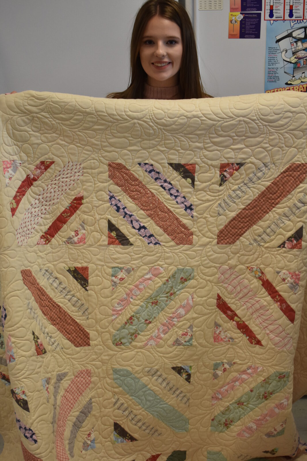 Students in Sewing Arts at Crookston High School have been sewing quilts for the past several months and will display them Friday, January 25 in the Commons explains Sophie Sanders. “The quilt show is in the commons at the high school from 5:00 to 7:00 p.m.,” said Sanders. “We made the quilts in Sewing Arts and the class was fun but also stressful at times.”