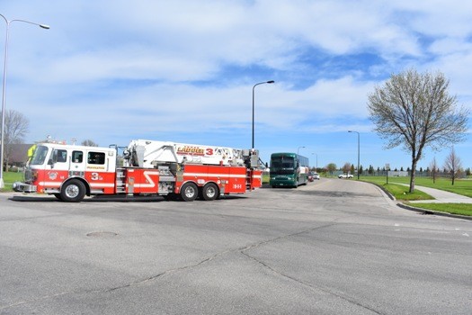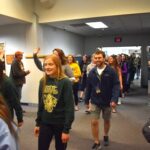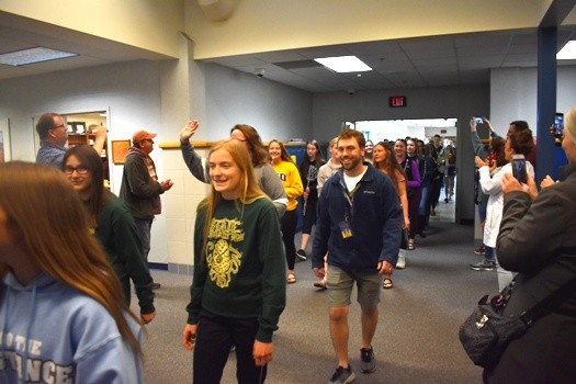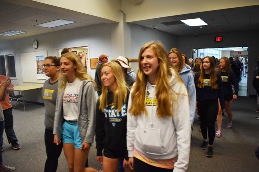 The Crookston High School held a send-off for the state-bound Girls Track team and Envirothon team this morning. The Envirothon team will be competing in the state competition in Elk River and the Pirate Girls Track team will compete in the State True Team meet in Stillwater on Saturday. The Crookston Police and Fire Department escorted the track team out of town after the send-off.