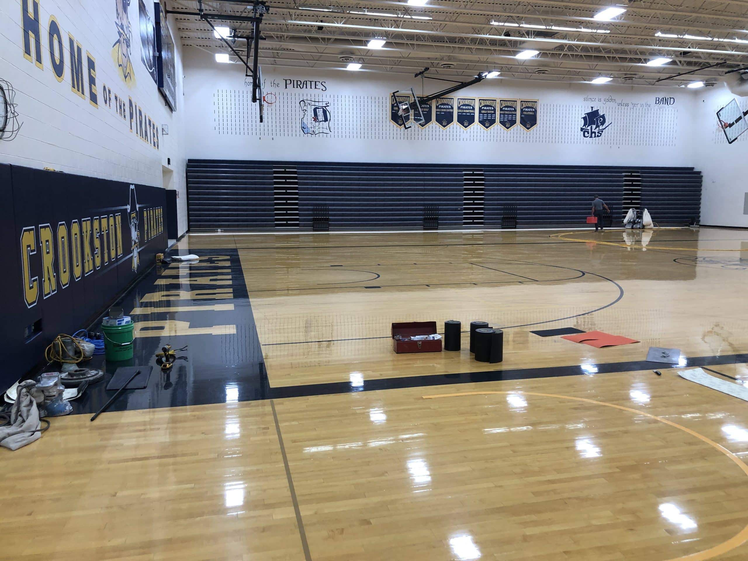 Students and student-athletes returning to Crookston High School this fall will notice a new gymnasium floor this fall as the gym floor is being sanded and repainted this summer.