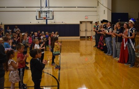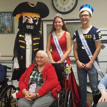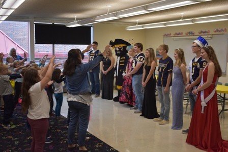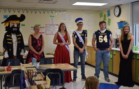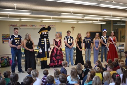 The Crookston Pirate Homecoming Court visited Highland, Washington, and Cathedral Schools on Wednesday morning.  They also visited the residents at the Villa St. Vincent. The school held a pep fest earlier in the morning with the senior football players choreographing a dance routine.