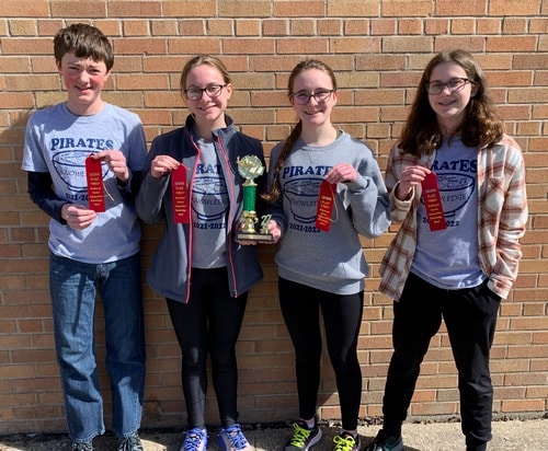 The Crookston Junior High Knowledge Bowl teams competed in the Region 1 and 2 Knowledge Bowl meet on Thursday in Thief River Falls. There were 33 teams competing. Crookston had a successful day with Crookston Blue placing second overall and Crookston Gold placing 9th overall.