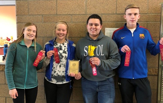 The Crookston High School Knowledge Bowl team of Katherine Geist, Emily Gillette, Scott Cordova, and Walker Winjum finished second place in their latest competition. They lost to Fisher by one point. The Crookston team will be moving on to the regional competition on Wednesday, March 13 at Thief River Falls. The top four places from regionals advance to state.