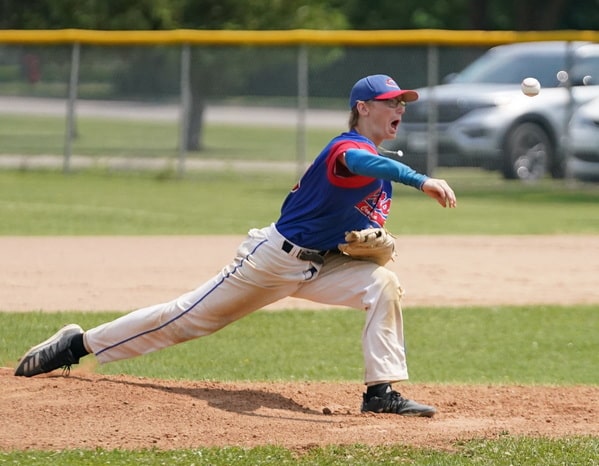 Warroad’s first batter Kas Pietruszcwski reached on an error. The next batter was retired before Liam Grover reached on an error, which scored a run. The next batter was retired before a pitch hit Murray Marvin. The next Warroad batter was retired, ending the half-inning with Warroad cutting the deficit to 2-1.