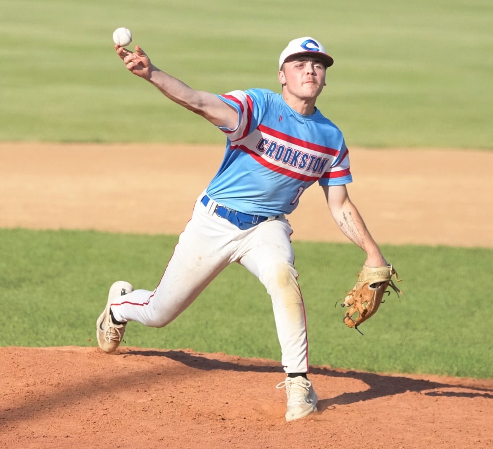 Crookston’s Tony Elbinger reached on an error, and Cody Demarais singled. A runner was picked off before a flyout and a strikeout.