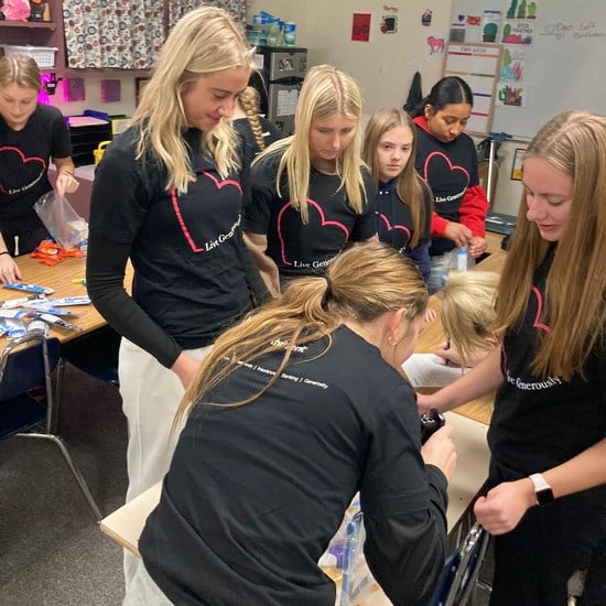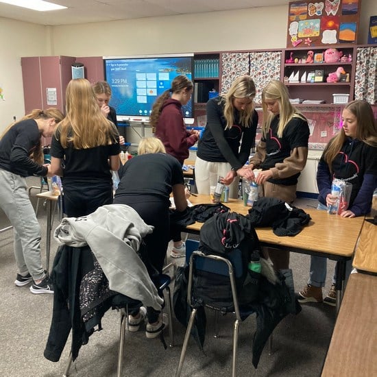 The Crookston National Honor Society worked with Thrivent Financial to sponsor a hygiene drive for Crookston High School. Students packed little bags filled with essential items like shampoo, body wash, toothbrushes, toothpaste, lip balm, lotion, cough drops, bandaids, and laundry detergent.