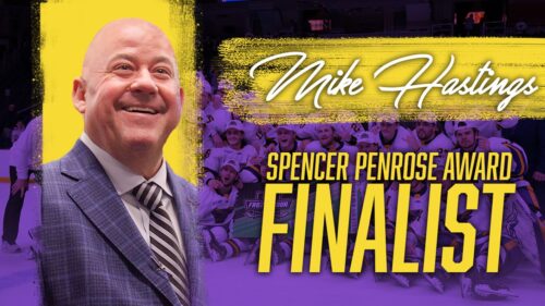 Joining Hastings on the finalist list are North Dakota’s Brad Berry, Denver’s David Carle, Quinnipiac’s Rand Pecknold, Northeastern’s Jerry Keefe, AIC’s Eric Lang, Minnesota’s Bob Motzko, and Michigan’s Mel Pearson.