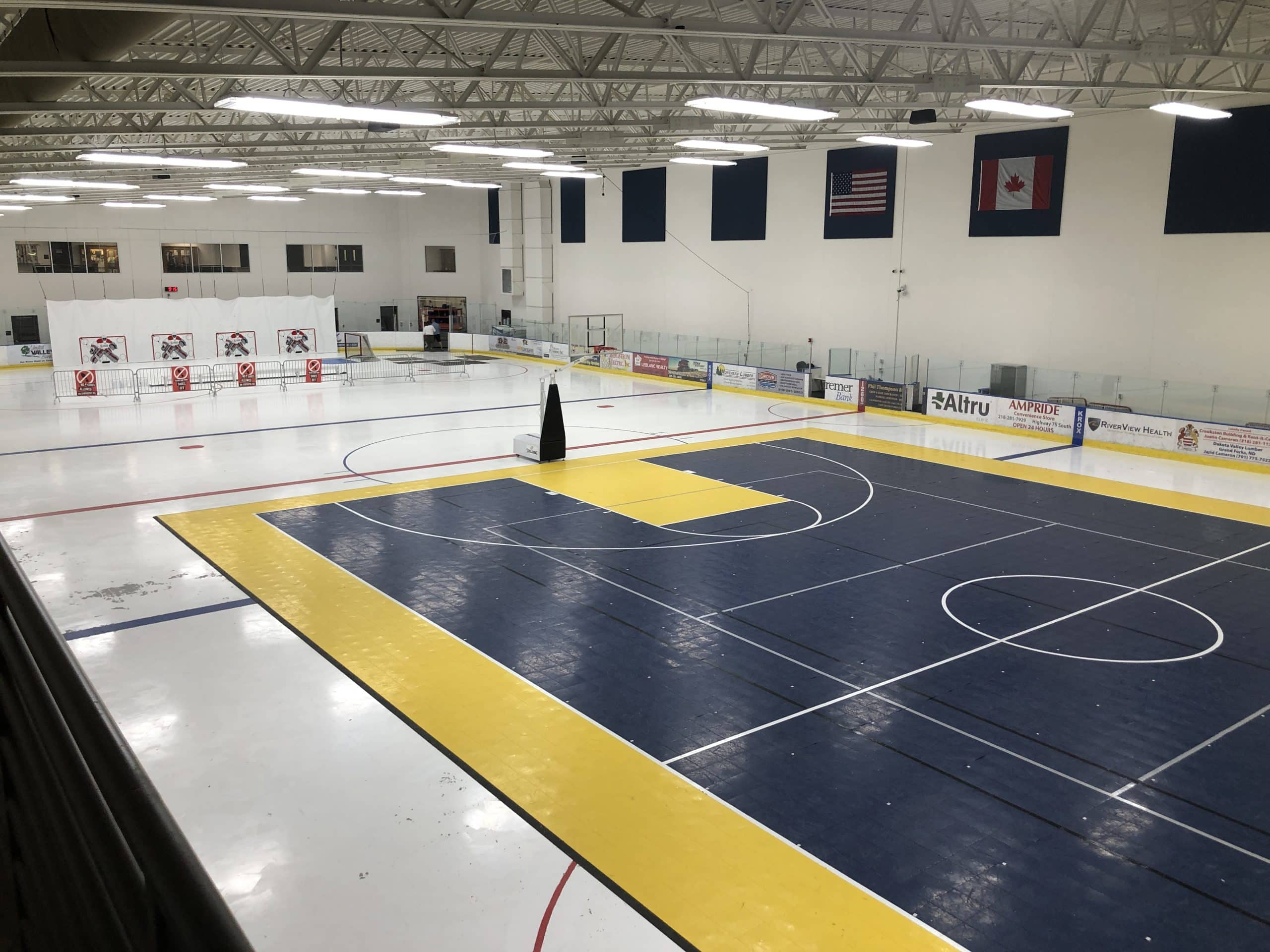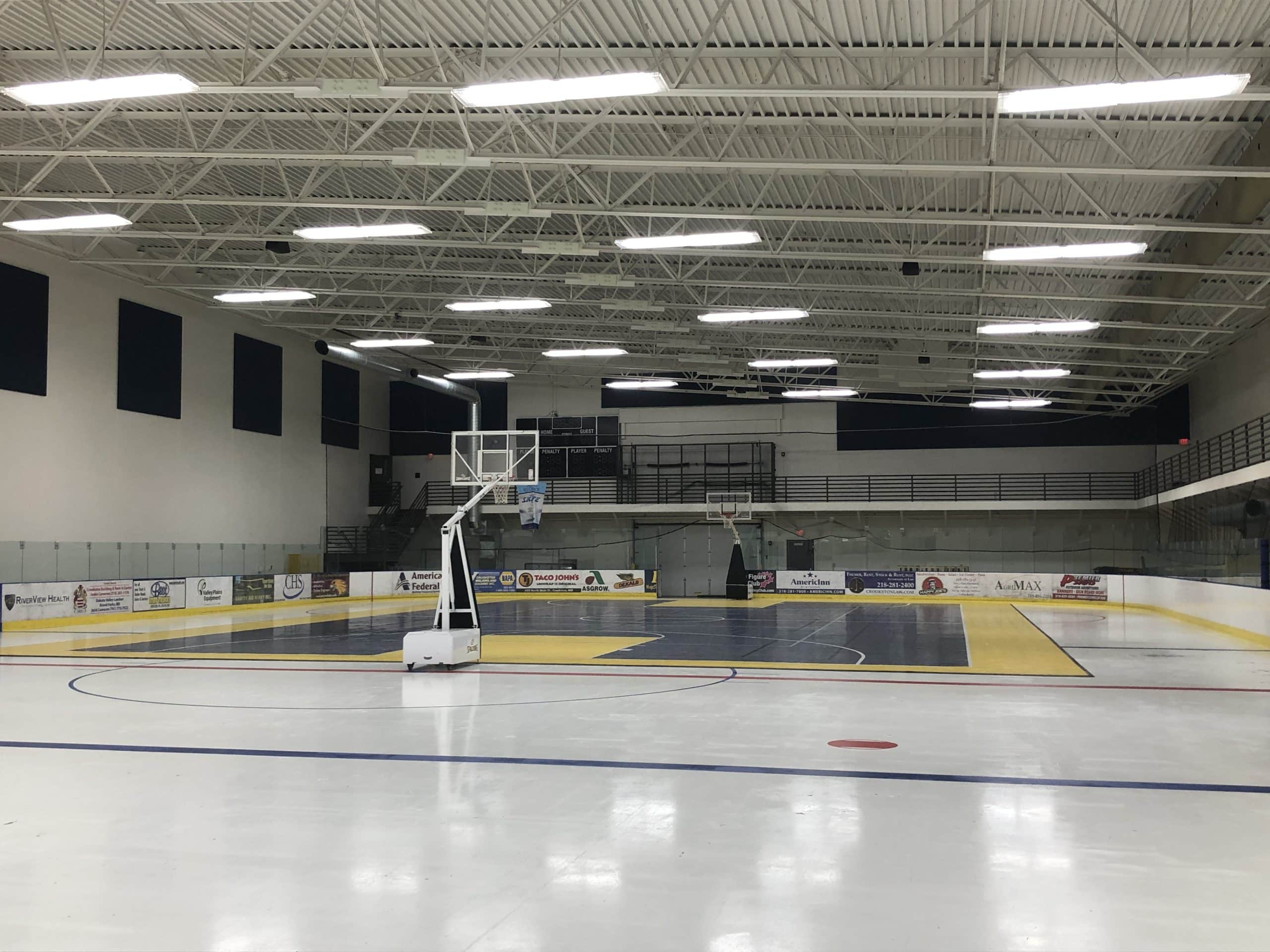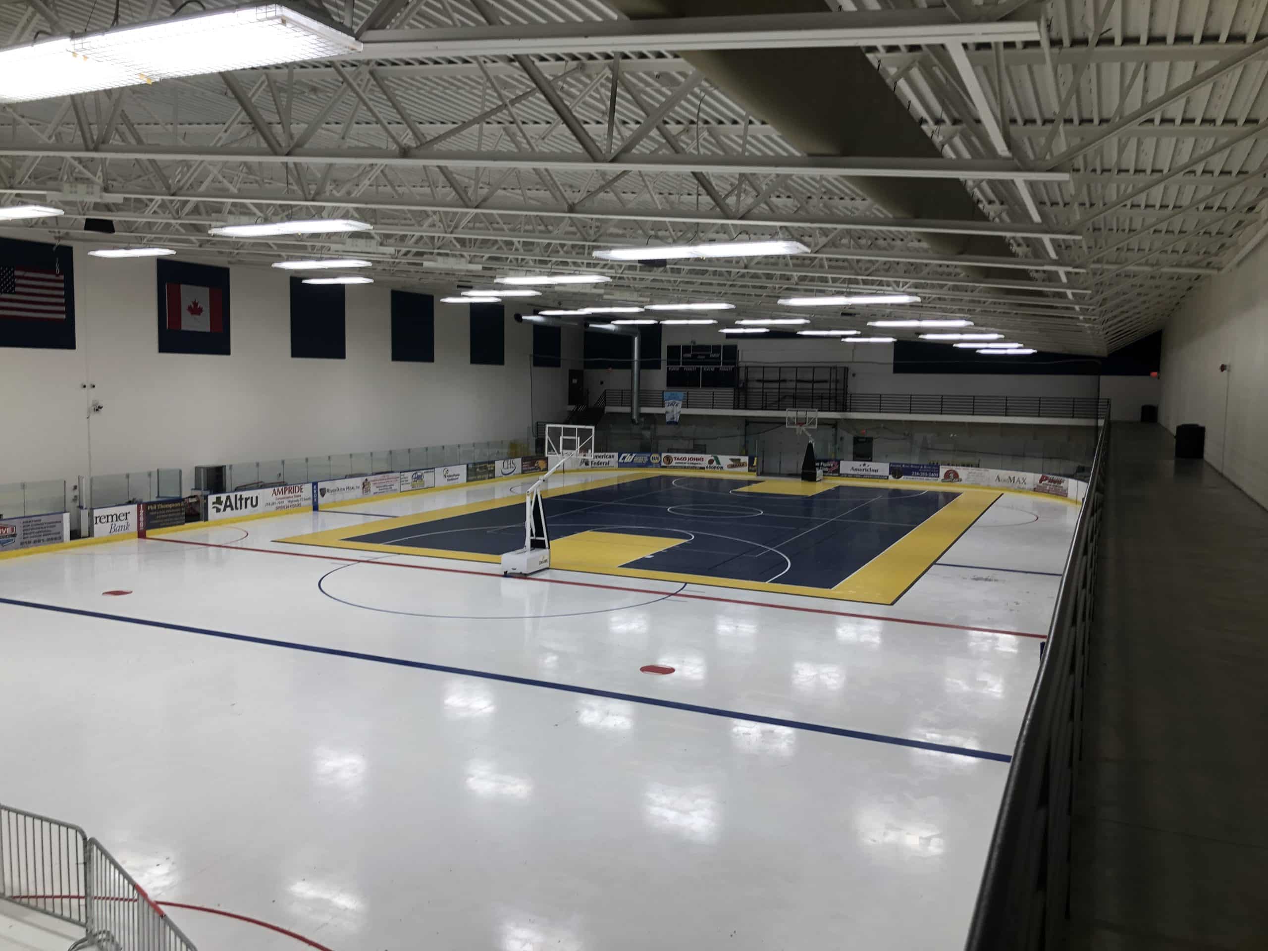 The Crookston Parks & Rec has opened the Blue Arena in the Crookston Sports Center, behind the Main Arena, for people who want to come and play basketball or skate & shoot pucks on its new synthetic ice that was sponsored by the Pirate Boosters, Hot Stove Hockey, and the Crookston Blue Line Club.