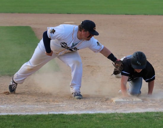 The Pirates brought ten batters to the plate in the bottom of the fifth and scored five runs. A pitch hit DeLeon, and Bruggeman singled to start the inning. After the runners advanced into scoring position, Austin Trinkle singled them both in to add on for a 7-3 lead. After a strikeout, Gunderson singled, and Jacob Miller followed with a single to score Trinkle. One batter later, Butt singled to score both Gunderson and Miller to make it 10-3 after five innings. “We said somewhere around the fifth inning or so that we wanted to get six runs… we didn’t necessarily need them all at once, but we were looking for six runs to win it,” said Coach Bakken.